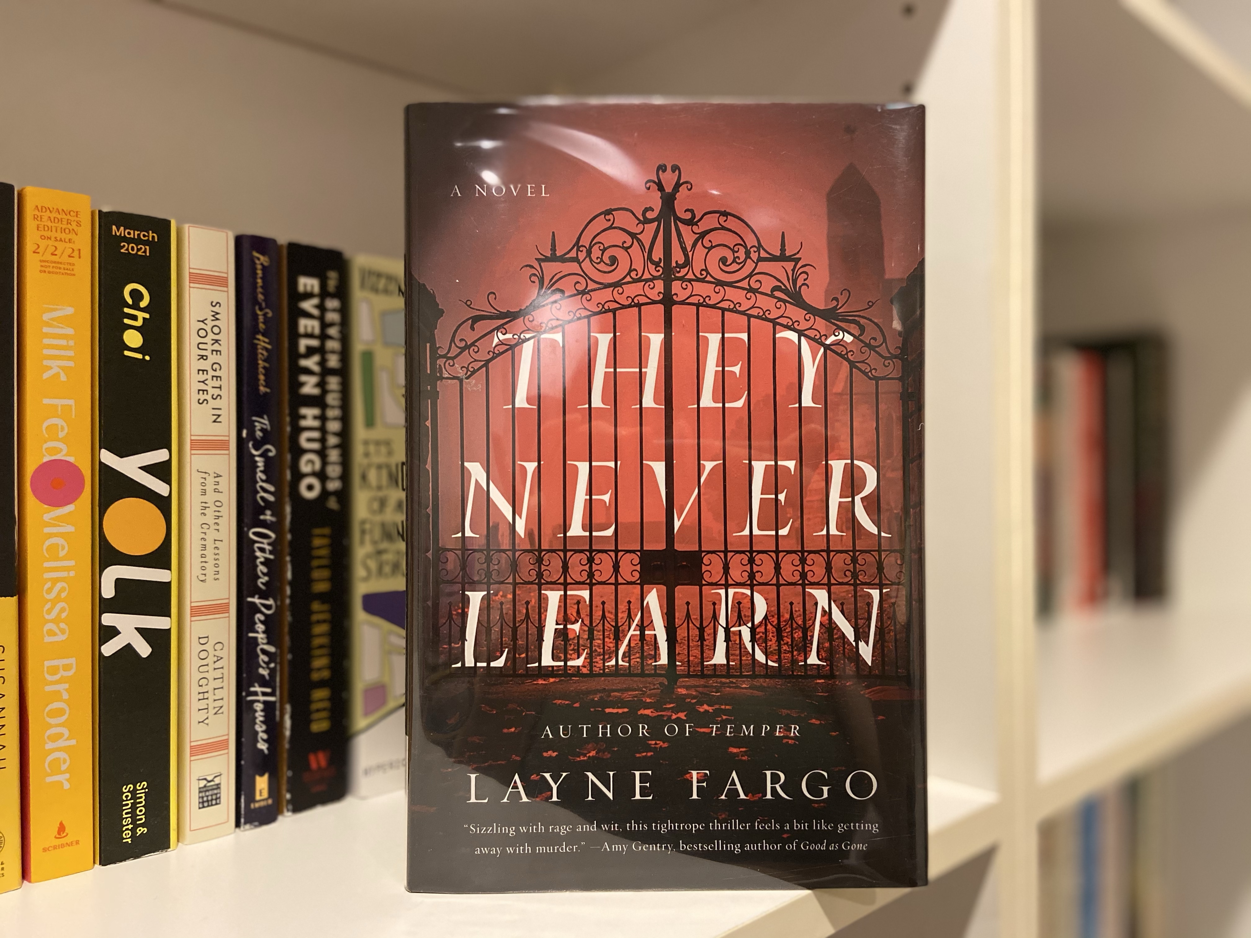 The first book I plan to read this month is THEY NEVER LEARN by Layne Fargo. This book is the May selection for BooksandLala’s Late Night Book Club, which I have never participated in up until this month! I had never heard of this book until she announced that it was this month’s selection, however, after reading many reviews for it on Goodreads, I am very excited to start reading it! As you can probably tell by the reflective plastic protection, I picked this book up from my library.